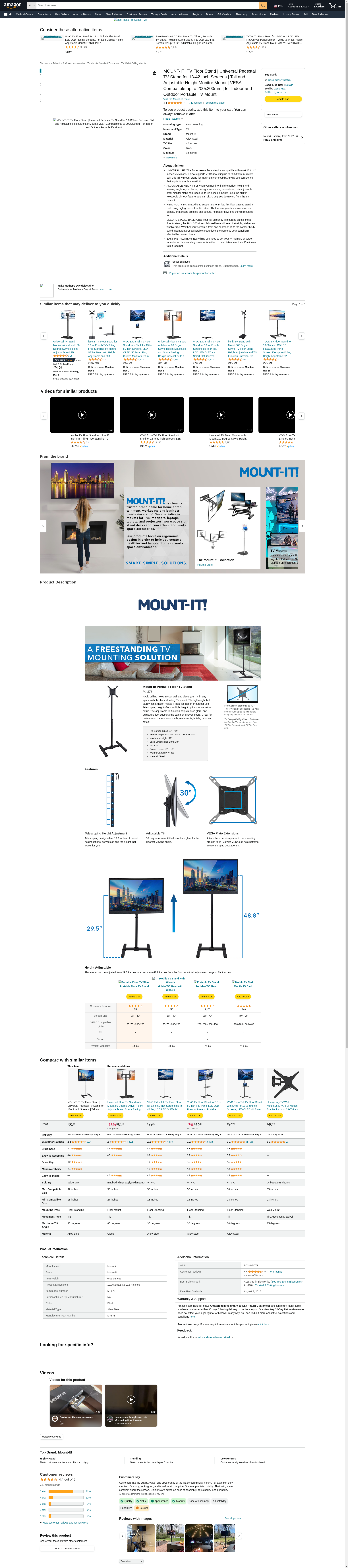 - EASY INSTALLATION: Everything you need to get your tv, monitor, or screen mounted on this standing tv mount is in the box, and takes less than 10 minutes to put together.