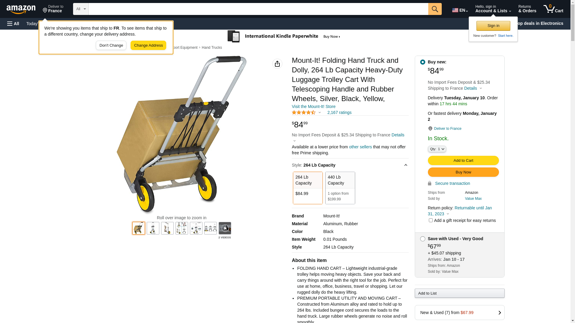 Mount-It! Folding Hand Truck and Dolly, 264 Lb Capacity Heavy-Duty Luggage Trolley Cart With Telescoping Handle and Rubber Wheels, Silver, Black, Yellow,