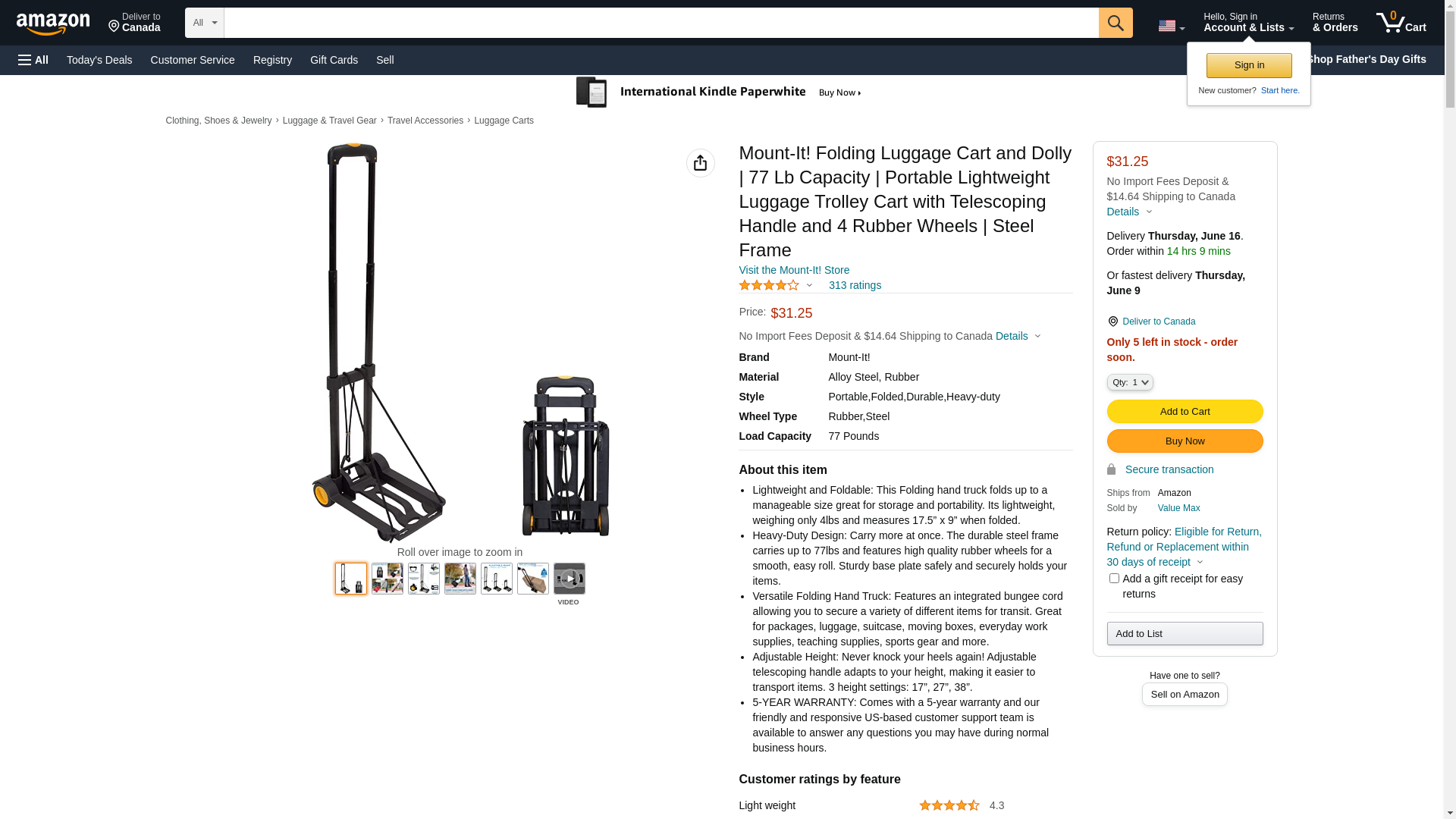 Mount-It! Folding Luggage Cart and Dolly | 77 Lb Capacity | Portable Lightweight Luggage Trolley Cart with Telescoping Handle and 4 Rubber Wheels | Steel Frame