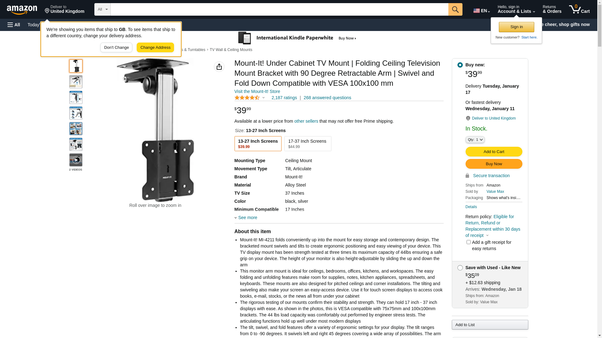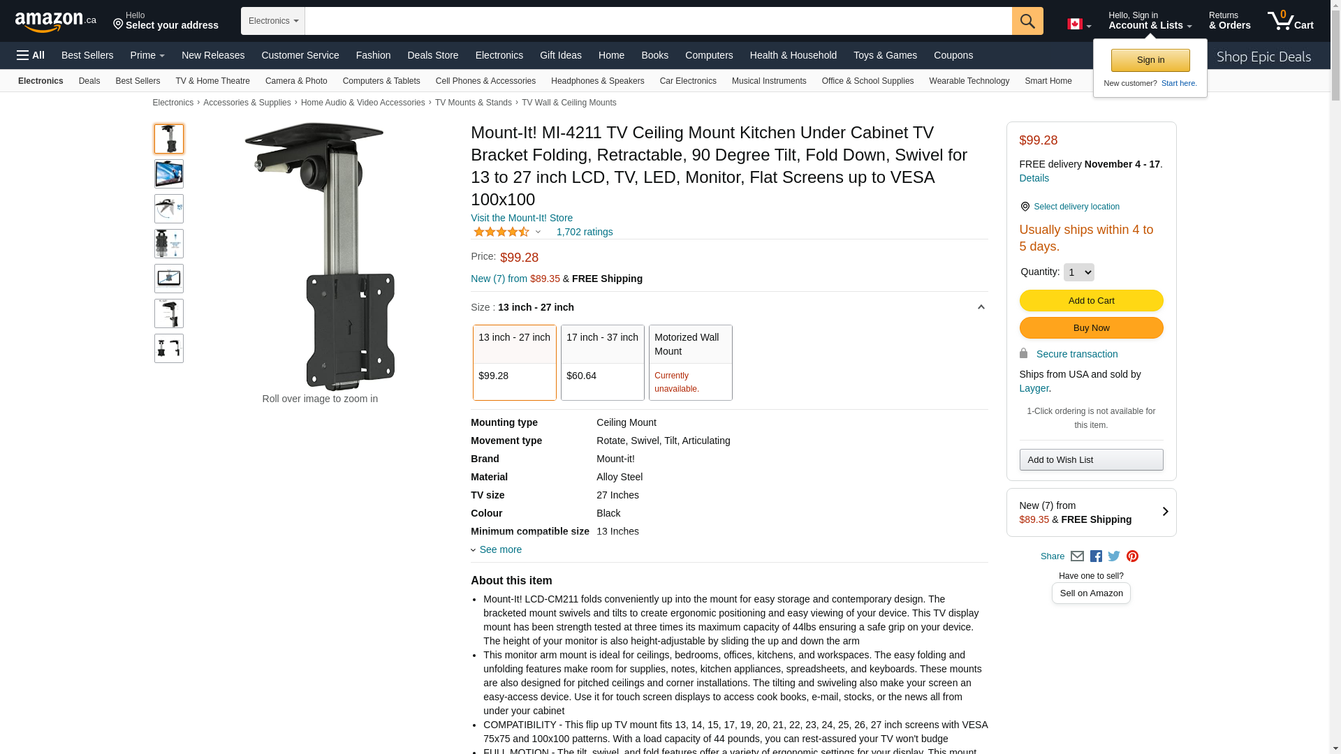 Mount-It! MI-4211 TV Ceiling Mount Kitchen Under Cabinet TV Bracket Folding, Retractable, 90 Degree Tilt, Fold Down, Swivel for 13 to 27 inch LCD, TV, LED, Monitor, Flat Screens up to VESA 100x100: Maxedbuy.com