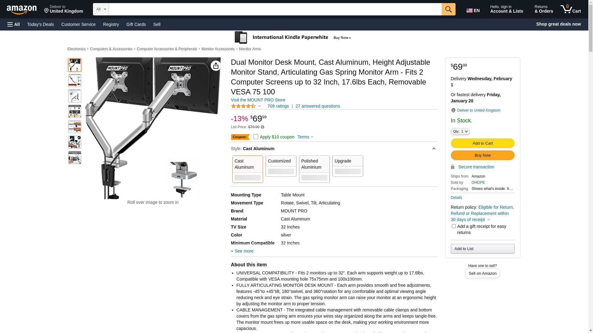 - SOLID CONSTRUCTION - The C-Clamp and Grommet mounting base holds your monitors securely. Choose the proper mounting method as you need. Aviation grade aluminum material and powerful gas-spring arm provide stable and safe holding for your monitors.