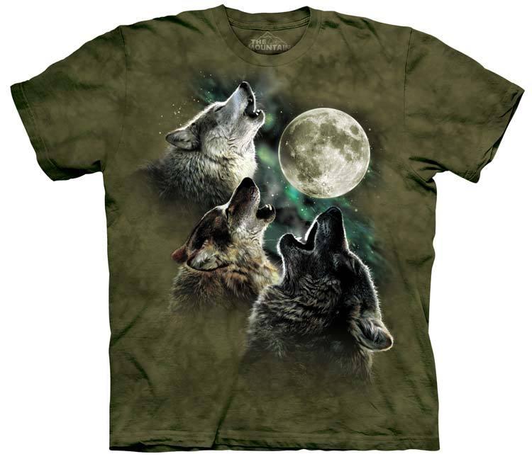 Mountain Corp. 1038574 3D Effect T-Shirt - Three Wolf Moon in Olive-2XL