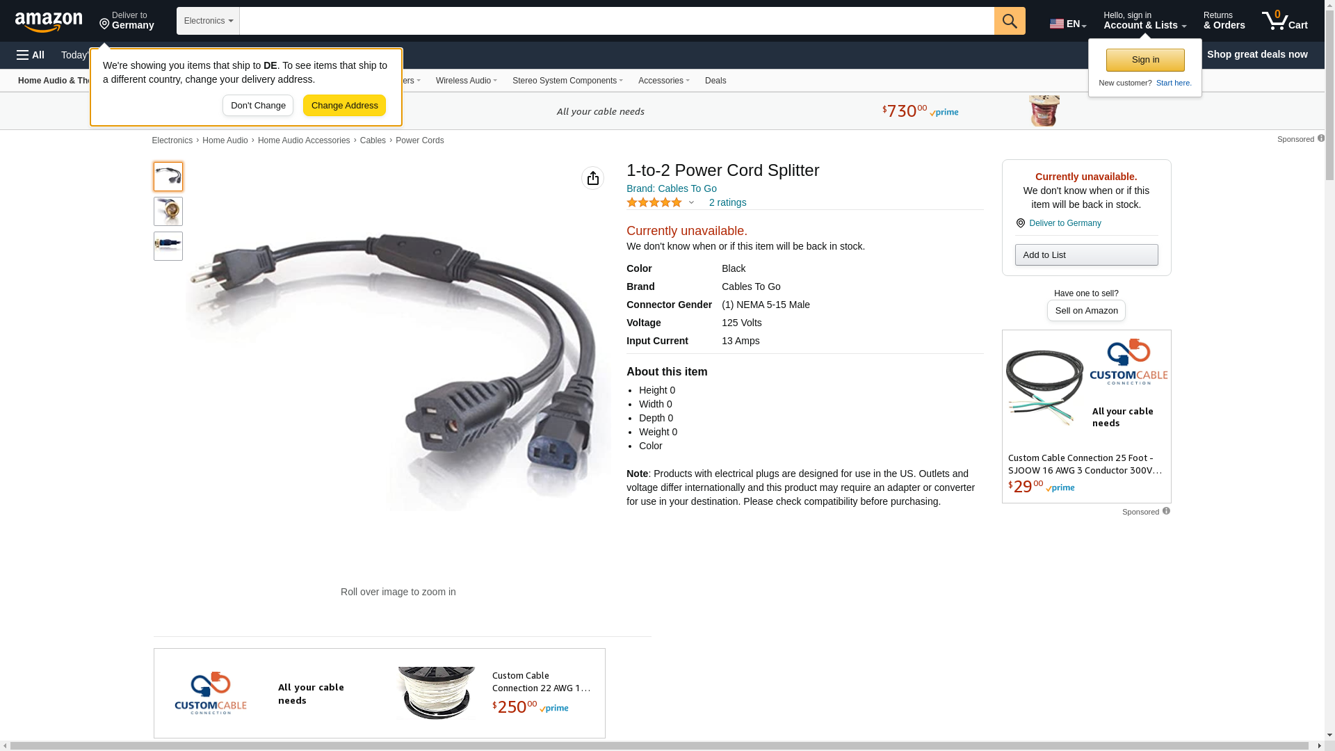 | Feature | 1.5ft 16 AWG 1-to-2 Power Cord Splitter (NEMA 5-15P to 1 NEMA 5-15 +1 IEC320C13) |