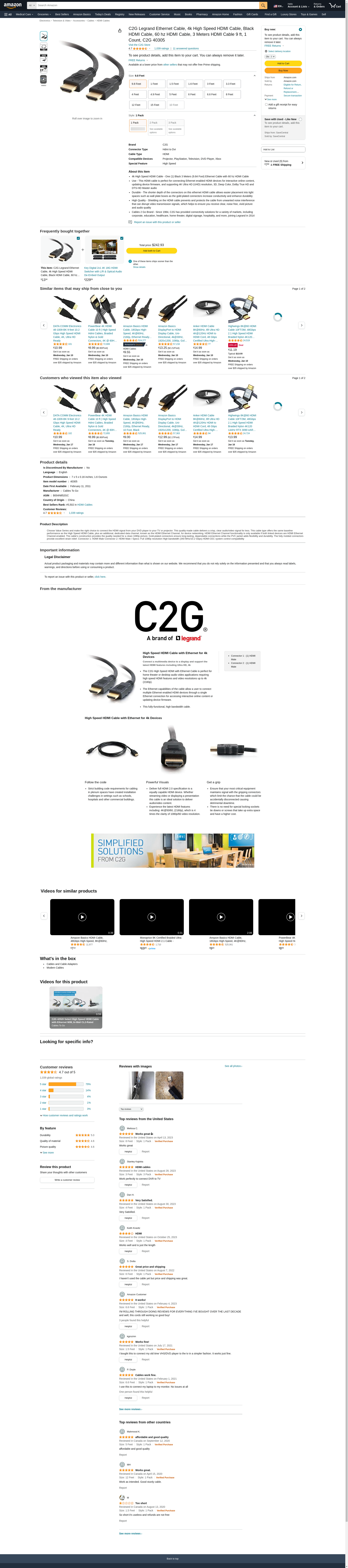 Cables To Go Value Series High Speed Hdmi Cable With Ethernet - Video / Audio / Network Cable - Hdmi - 19 Pin Hdmi M - 19 Pin Hdmi M - 10 Ft - Black 3M Cbl Vs Hs W/ Eth Hdmi Manufacturer Part Number 40305