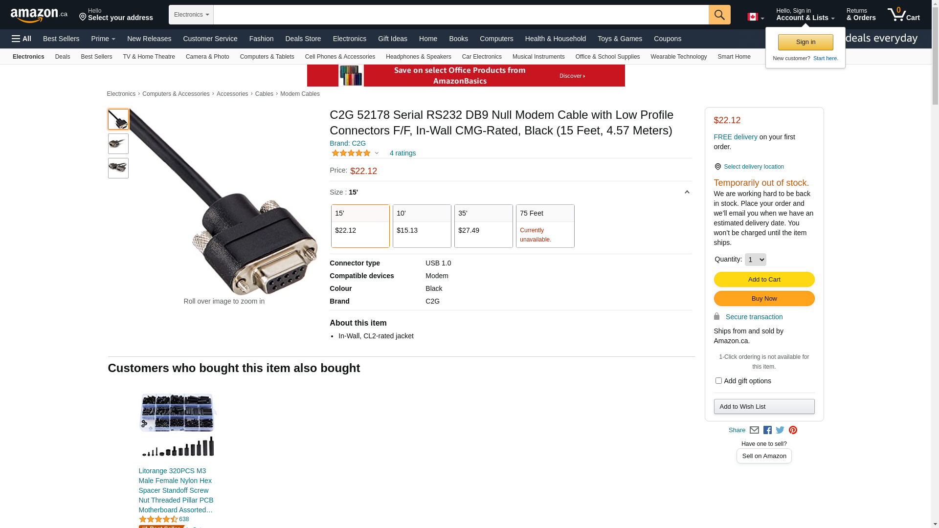 C2G 52178 Serial RS232 DB9 Null Modem Cable with Low Profile Connectors F/F, in-Wall CMG-Rated, Black (15 Feet, 4.57 Meters)