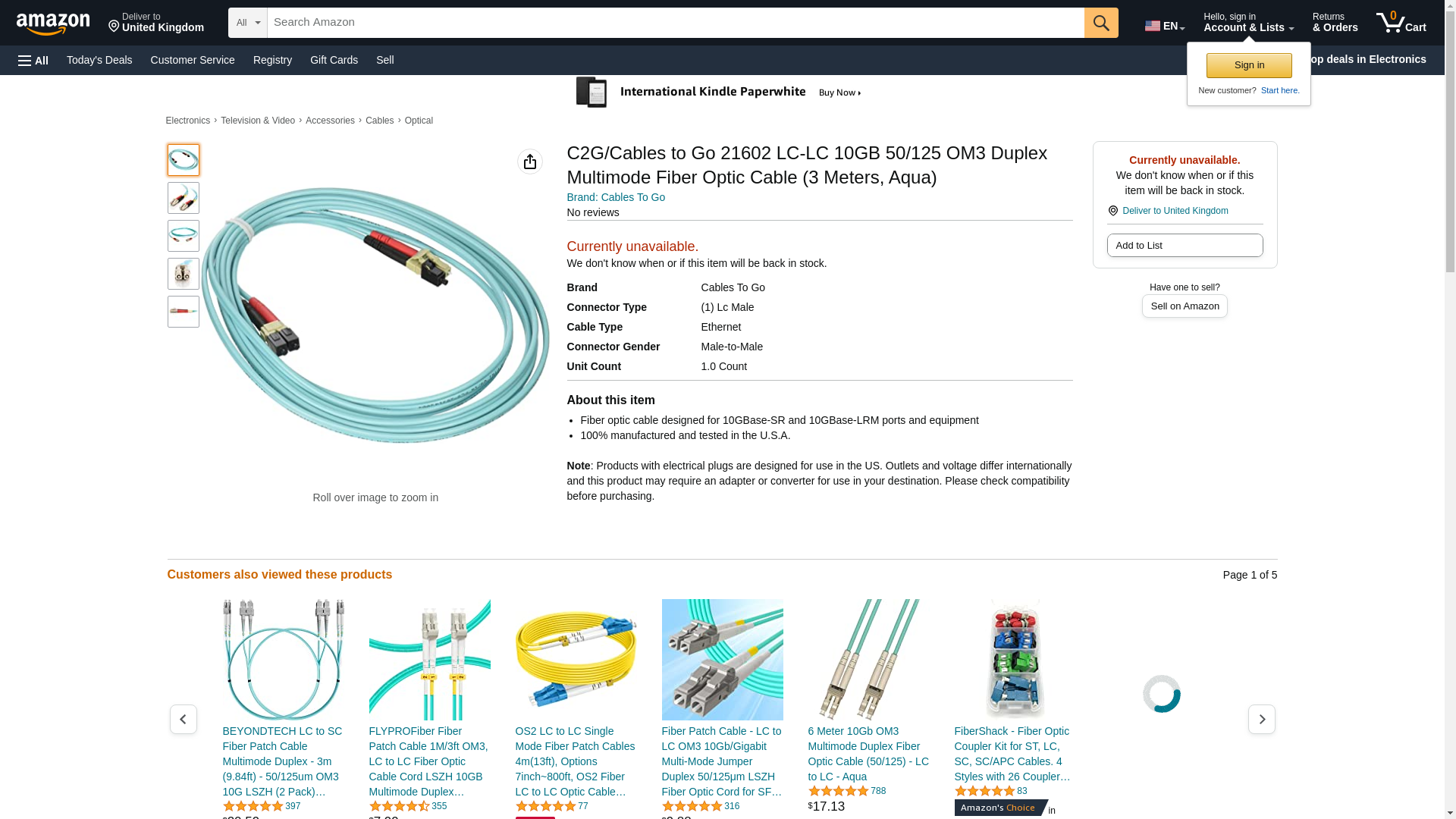 C2G / Cables To Go 21602 LC-LC 10GB 50/125 OM3 Duplex Multimode Fiber Optic Cable (3 Meters, Aqua). Fiber optic cable...
