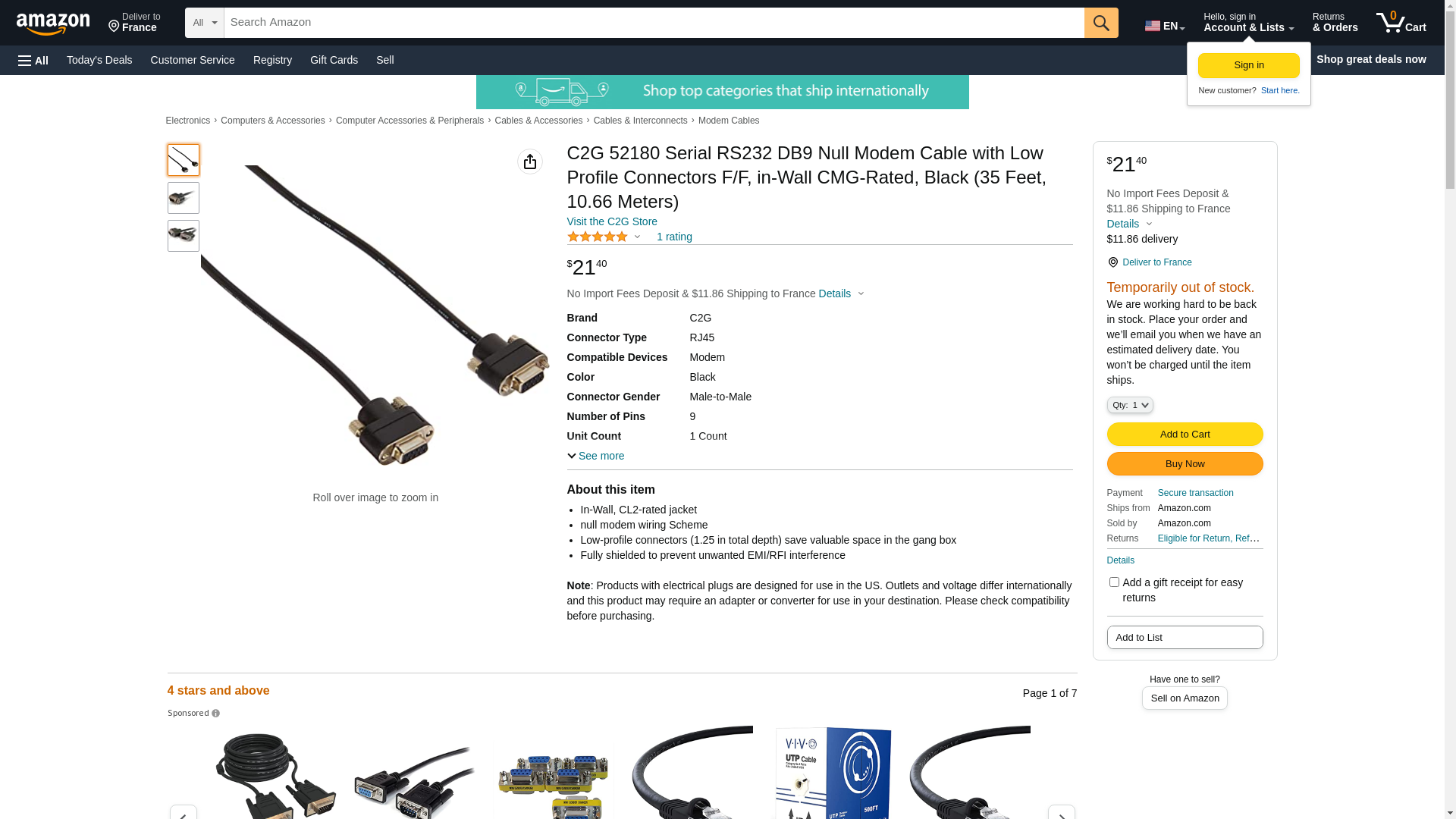 C2G 52180 35FT SERIAL RS232 DB9 MODEM CABLE WITH LOW PROFILE CONNECTORS F/F - IN-WALL