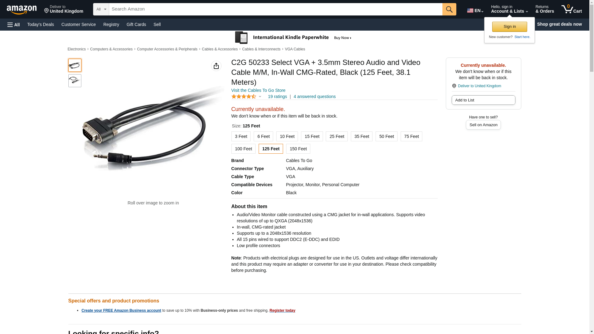 C2G / Cables To Go 50233 Select VGA + 3.5mm Stereo Audio A/V Cable M/M - In-Wall CMG-Rated, Black (125 Feet/38.1 Mete...