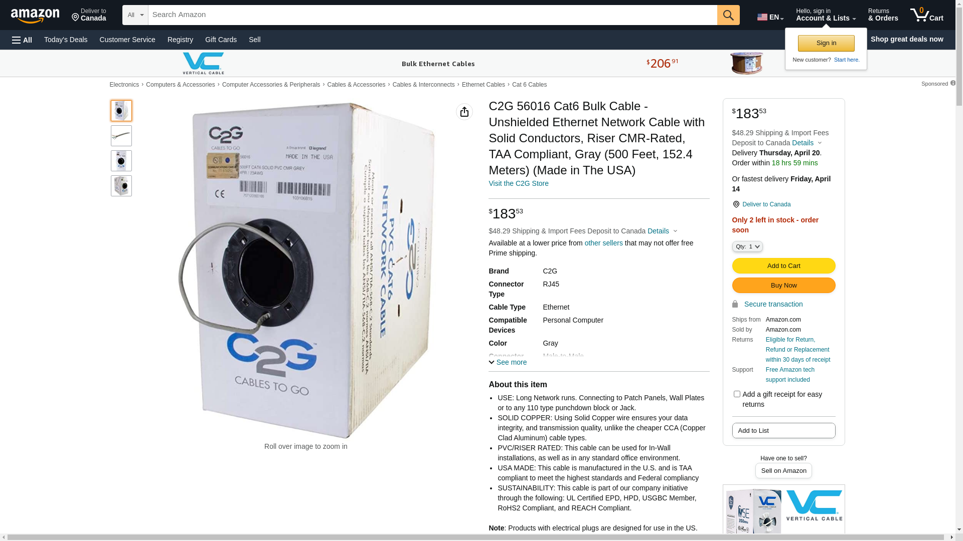Buy the Cables To Go 56020, CAT6 Bulk Unshielded (UTP) 1000 ft Ethernet Network Cable with Solid Conductors, Grey at Full Compass Systems. 0% Financing and Free Shipping on thousands of items!