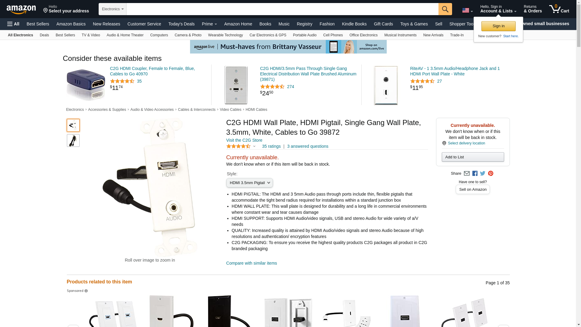 C2G HDMI/3.5mm Pass Through Single Gang Electrical Distribution Wall Plate White (39872)