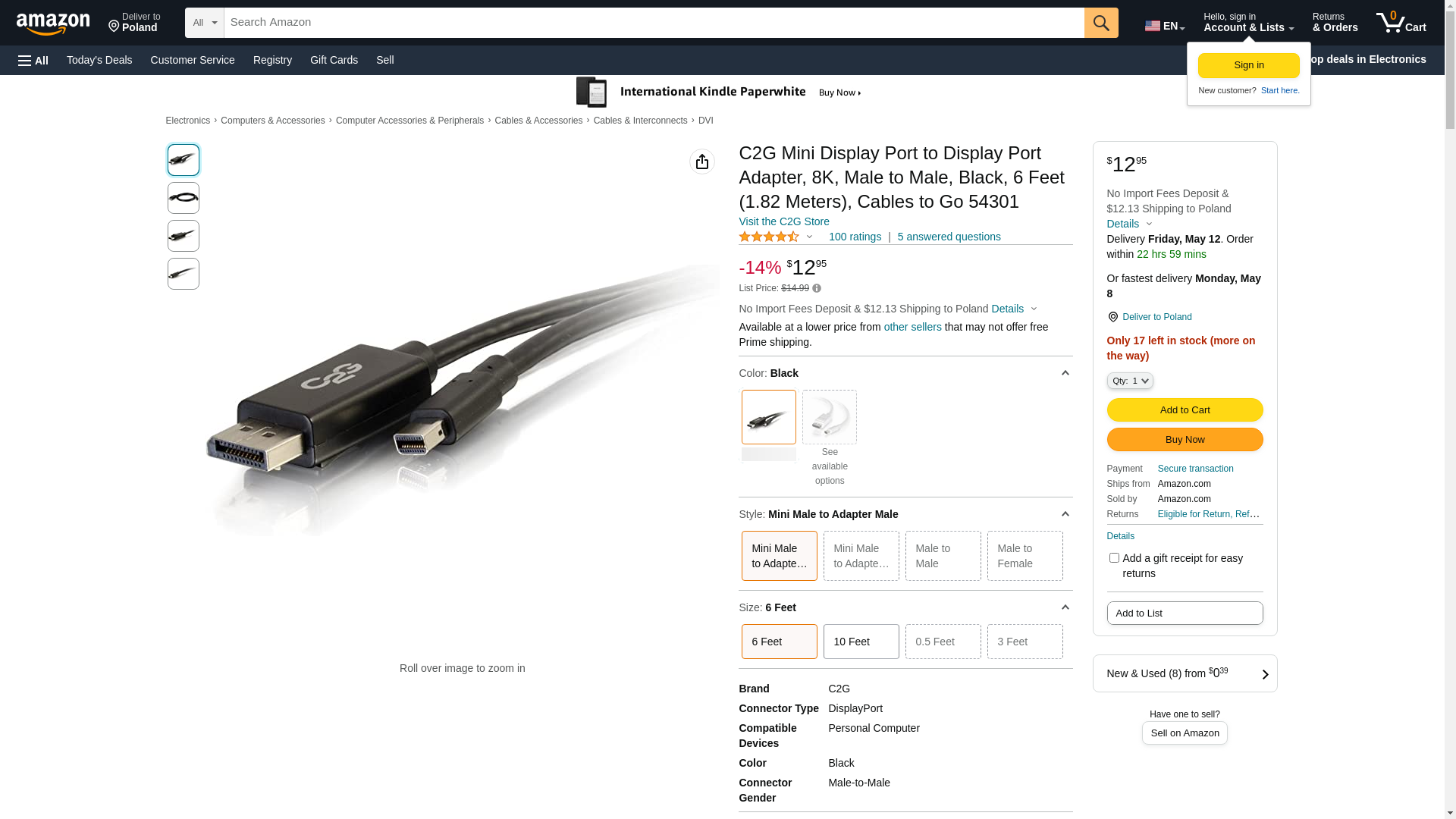 C2G 54301 Mini DisplayPort to DisplayPort Adapter Cable M/M, 8K UHD Compatible, Black (6 Feet, 1.82 Meters)