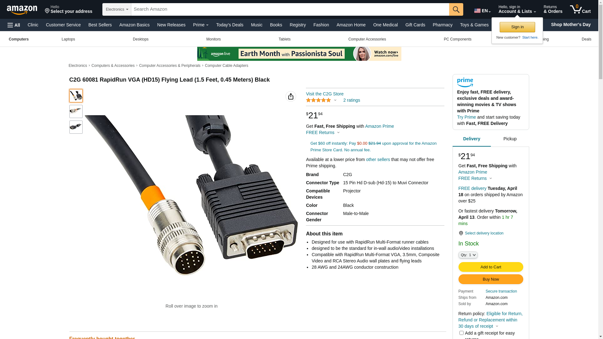C2G/Cables to Go 60081 1.5' RR HD15M Flying Lead