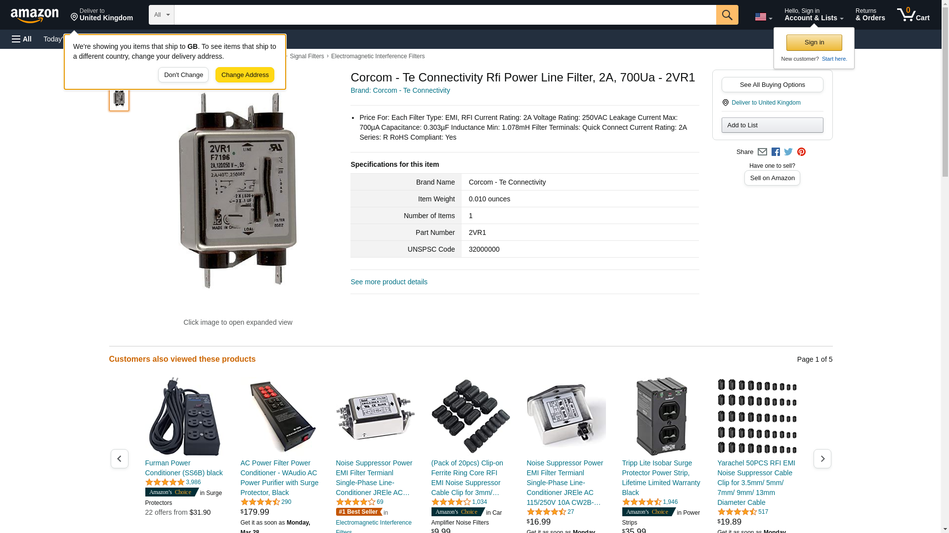 Corcom - Te Connectivity Rfi Power Line Filter, 2A, 700Ua - 2VR1