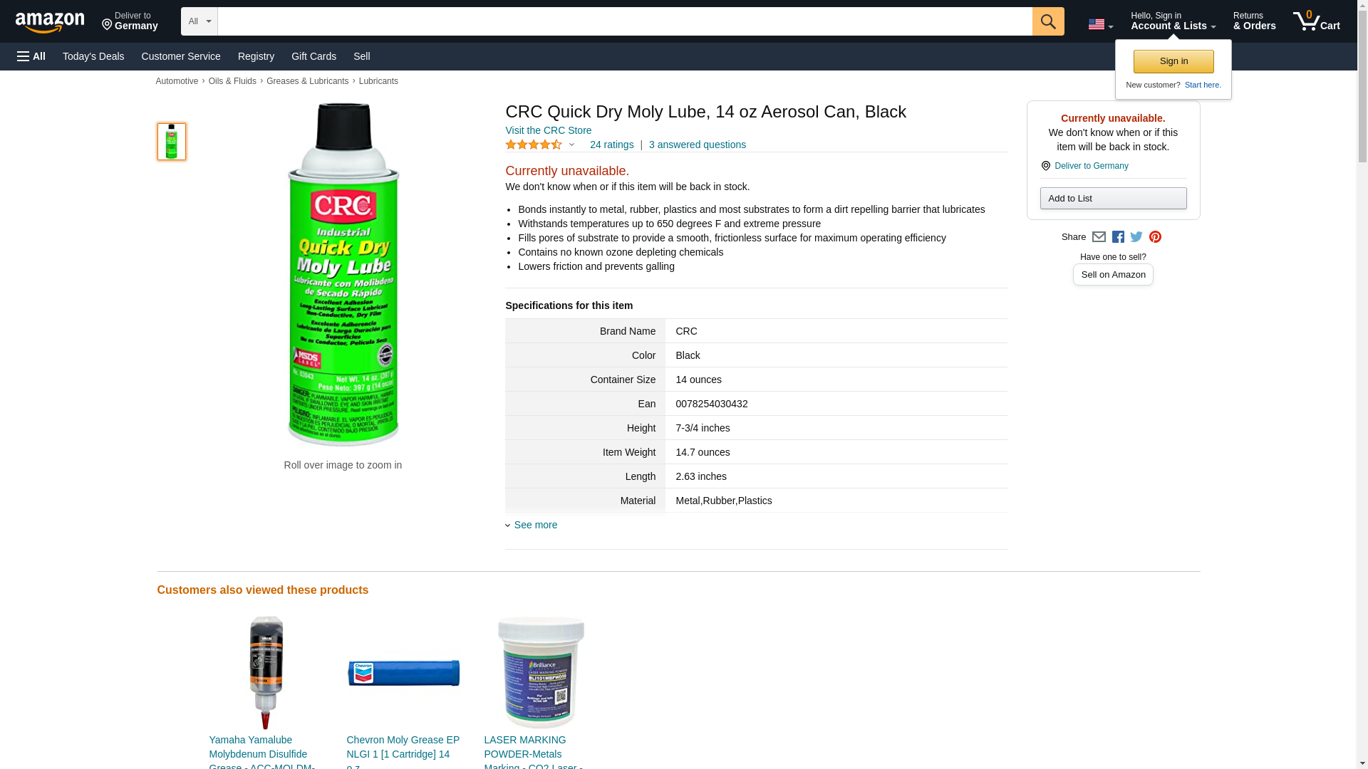 CRC Quick Dry Moly Lube, 14 oz Aerosol Can, Black. Bonds instantly to metal, rubber, plastics and most substrates to ...