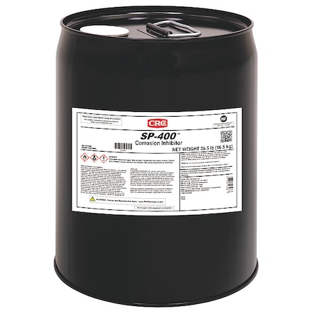 ' Corrosion Inhibitor, SP-400, Size 5 Gal, Flash Point 119 F, Specific Gravity 0.878, VOC Content 456.5, Propellant None, Dark Amber Liquid, Firm, Waxy Film, Corrosion Resistant, Displaces Moisture, Resistant to Humidity and Salt Spray, Protects Outdoors up to 2 Years, Motors, Shafts, Equipment Exposed to Elements, Outdoor Storage of Raw Materials and Finished Stock '