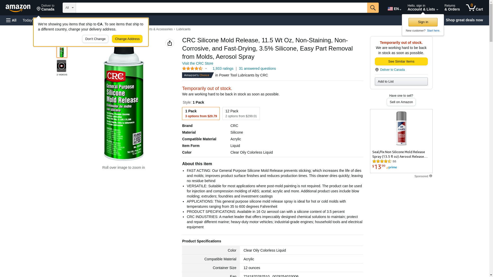 CRC Silicone Mold Release, 11.5 Wt Oz, Non-Staining, Non-Corrosive, and Fast-Drying, 3.5% Silicone, Easy Part Removal from Molds, Aerosol Spray