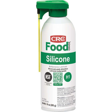 - Price For: Each Lubricant NSF Rating: H1 Food Grade Application: Food Processing/Handling Equipment, Chutes, Rails, Conveyors, Bottling Machinery, Slicers, Ovens, Freezers, Knives, Saws, Vending Machines, Ceramic Insulators Green Environmental Attribute: RoHS Compliant Item: Food Grade Silicone Lubricant Container Type: Aerosol Can Flash Point: 0 Degrees F VOC Content: 60% Specific Gravity: 0.66