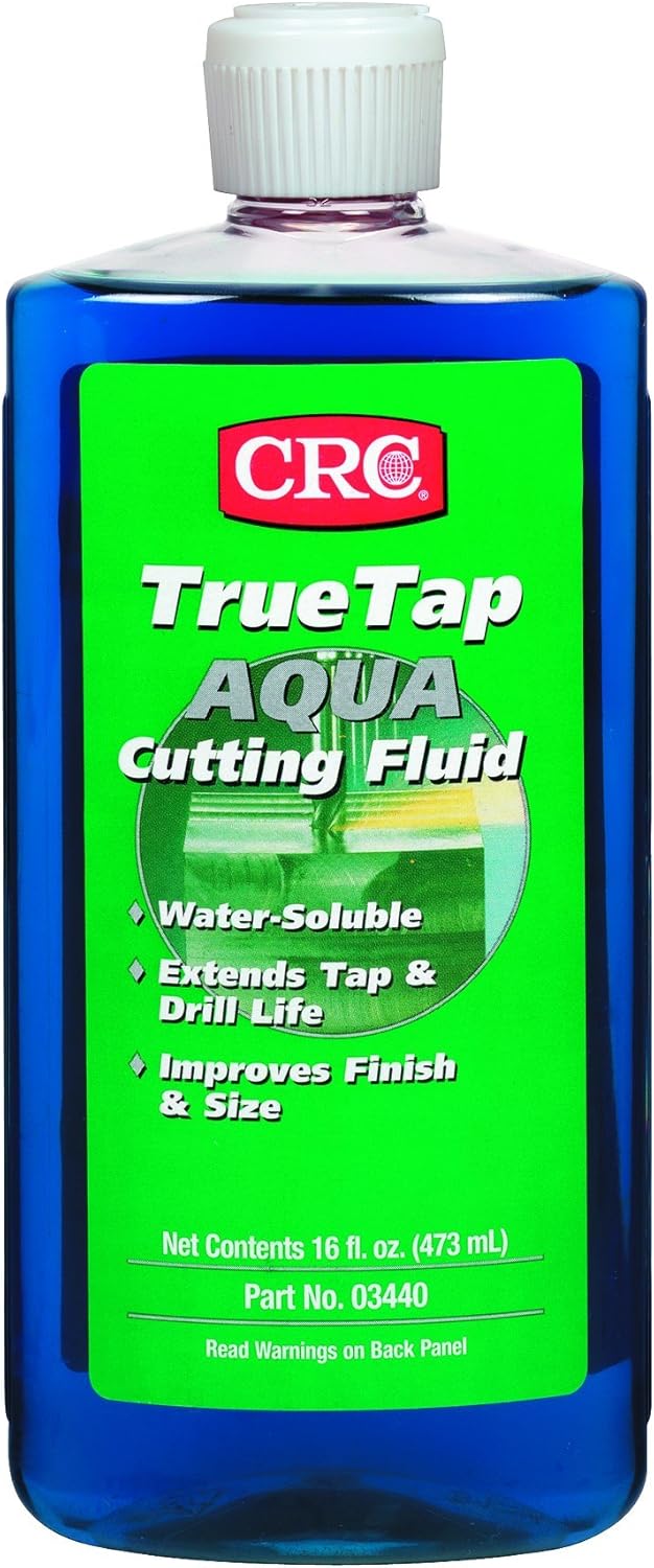 CRC TrueTap aqua cutting fluid is a water-soluble cutting fluid. It provides excellent cooling and lubrication and is a suitable replacement for solvent or oil-based cutting fluids. TrueTapTM Aqua works well in machine tools containing water soluble coolants. It will emulsify with the coolant without causing contamination. This fluid is ideal for cutting ferrous and non-ferrous metals. Recommended for tapping, threading, drilling, sawing, shearing, turning, and reaming metal parts, pipes, conduit, screws, bolt holes, housings, aluminum sheets, strapping, gears and chains. Use in conjunction with pipe threaders, drill presses, cutting tables, shears, tap sets, hand tools and lathes. Water soluble. A suitable replacement for solvent or oil-based cutting fluids. For use on all metals but works better when working with mild steels, cast iron, aluminum, and other non-ferrous applications. Greatly extends cutting tool life. Saves money by decreasing the number of tool repairs and new tool purchases. Does not contain 1,1,1-trichloroethane. 212 degrees F boiling point.