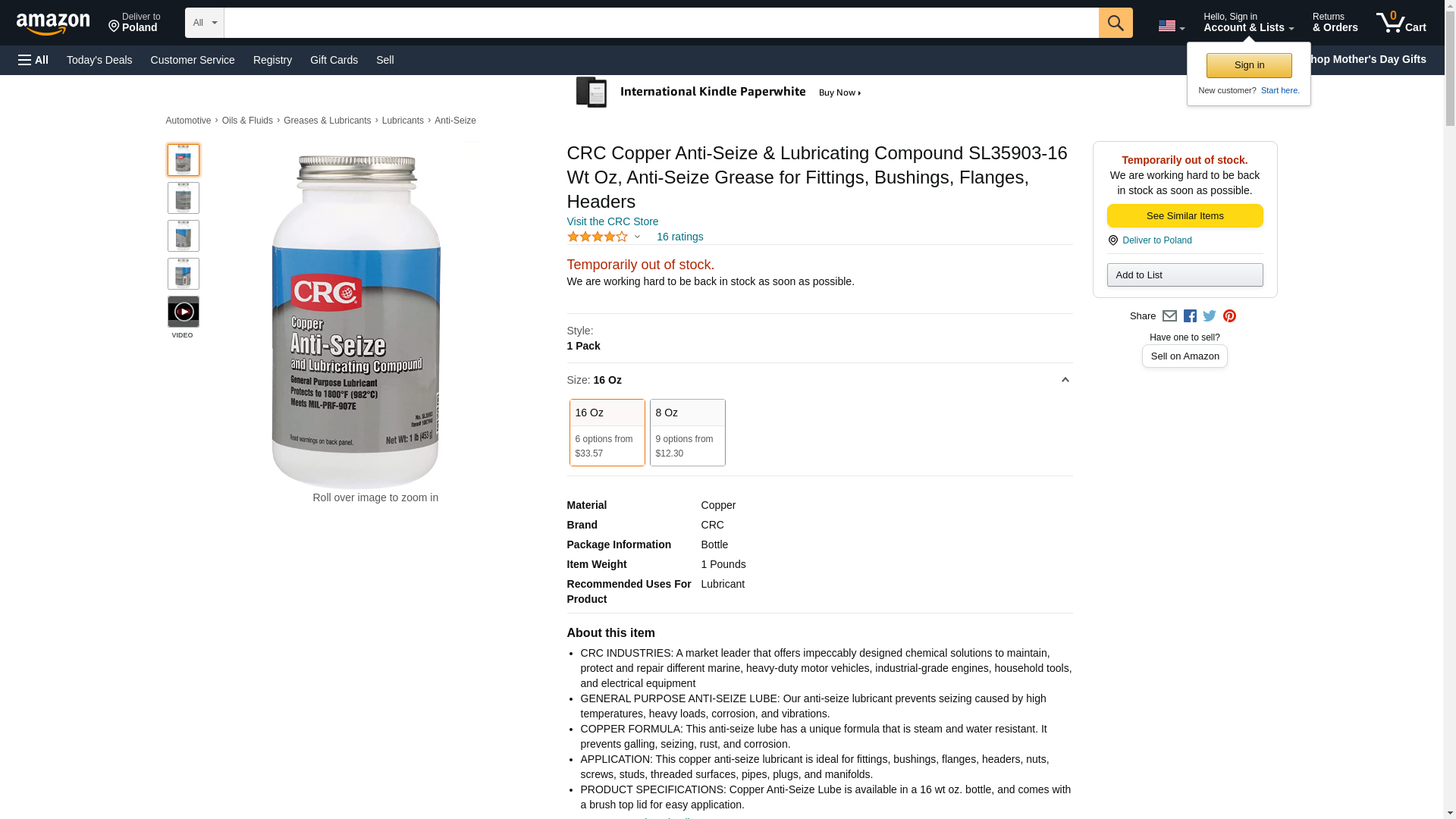 CRC Copper Anti-Seize & Lubricating Compound SL35903-16 Wt Oz., Anti-Seize Grease for Fittings, Bushings, Flanges, Headers