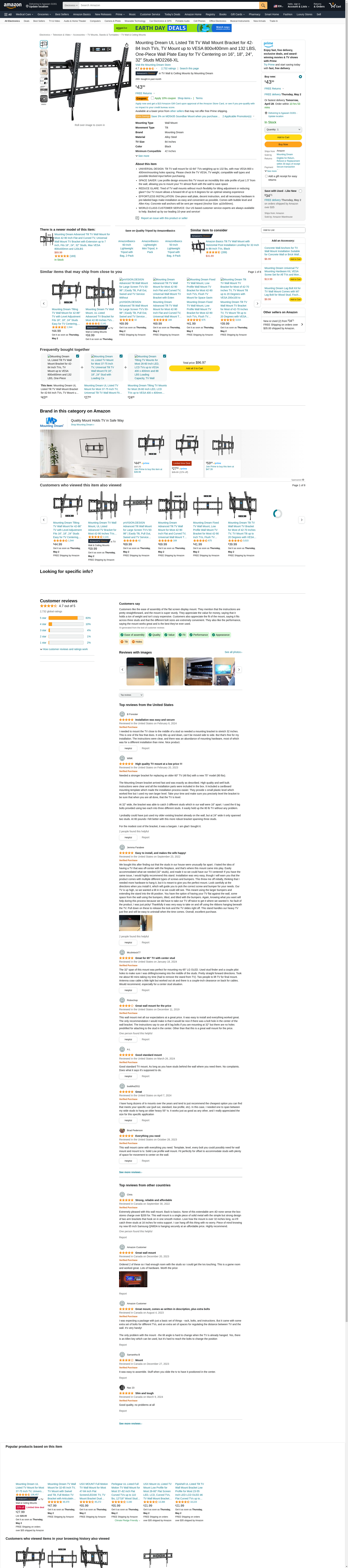 Mounting Dream Tilt TV Wall Mount Bracket for 42-84 Inch LED, LCD Flat Screen TVs, TV Mount up to VESA 800 mm and 132 LBS, One-Piece Wall Plate Easy for TV Centering on 16''~32'' Wood Studs MD2268-XL: Maxedbuy.com