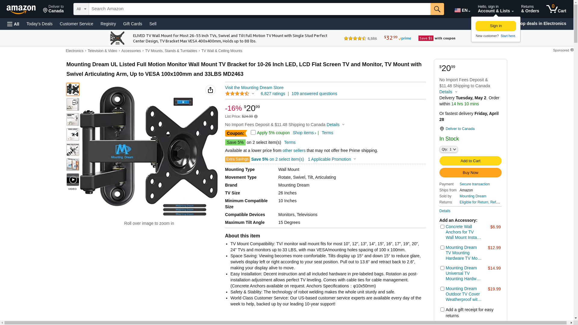 Mounting Dream Full Motion Monitor Wall Mount TV Bracket for 10-26 Inch LED, LCD Flat Screen TV and Monitor, TV Mount with Swivel Articulating Arm, Monitor Mount Up to VESA 100x100mm and 33LBS MD2463: Maxedbuy.com