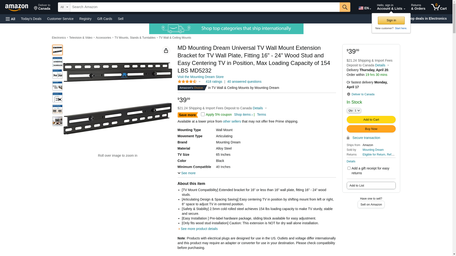 | Manufacturer | Mounting Dream |