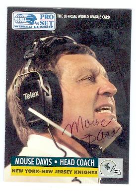 Mouse Davis autographed football card (New York New Jersey Knights) 1991 Pro Set World League No.110 PEN