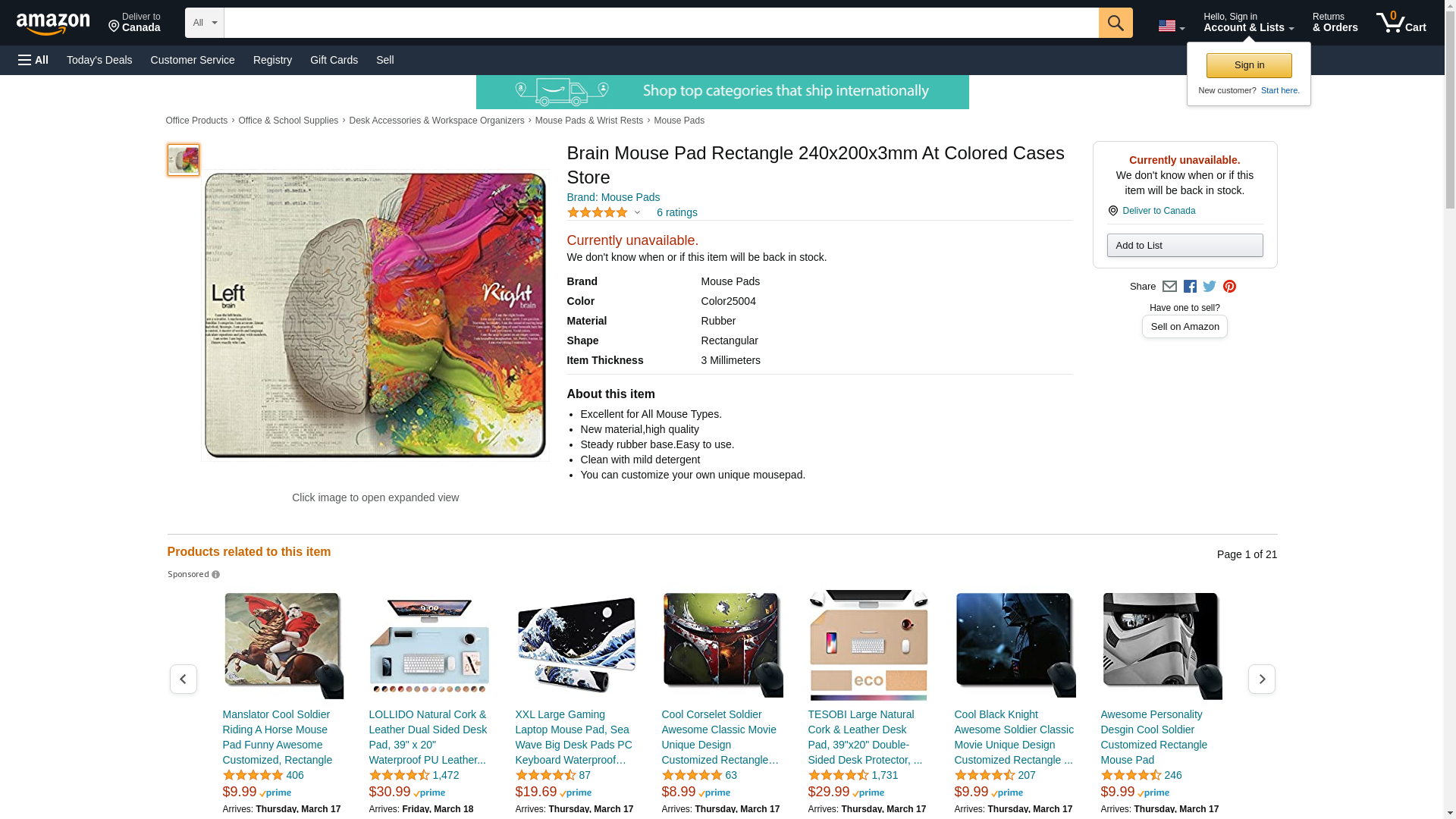 Brain Mouse Pad Rectangle 240x200x3mm At Colored Cases Store