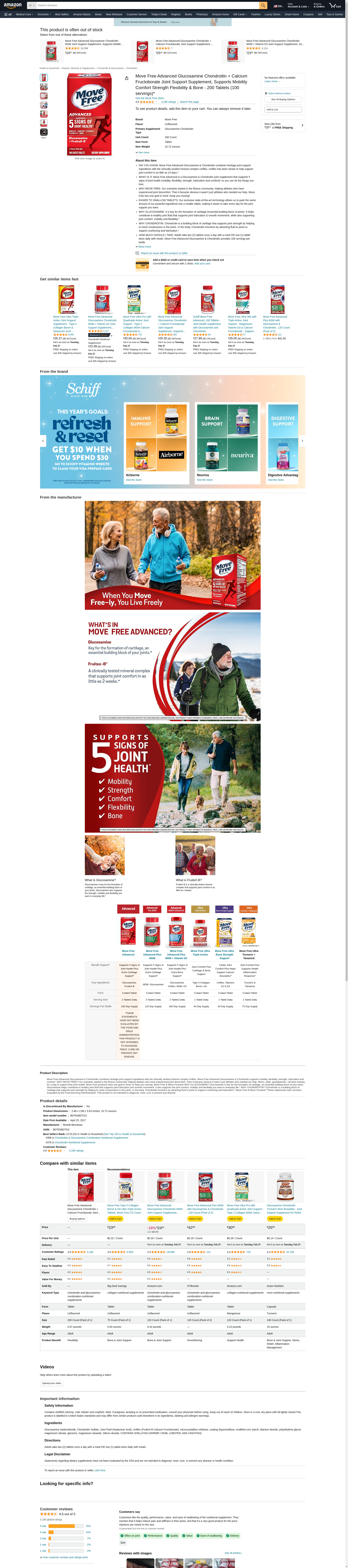 Buy Move Free Advanced Glucosamine Chondroitin + Calcium Fructoborate Joint Support Supplement, Supports Mobility Comfort Strength Flexibility & Bone - 200 Tablets (100 servings)* on Amazon.com ? FREE SHIPPING on qualified orders