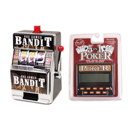 Novelty Bank and Electronic Bandit Slot Machine and Classic 5-in-1 Poker