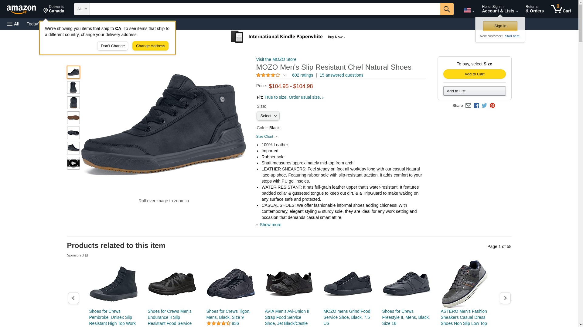MOZO Men's Natural Slip Resistant, Chef Shoes, Black, 9