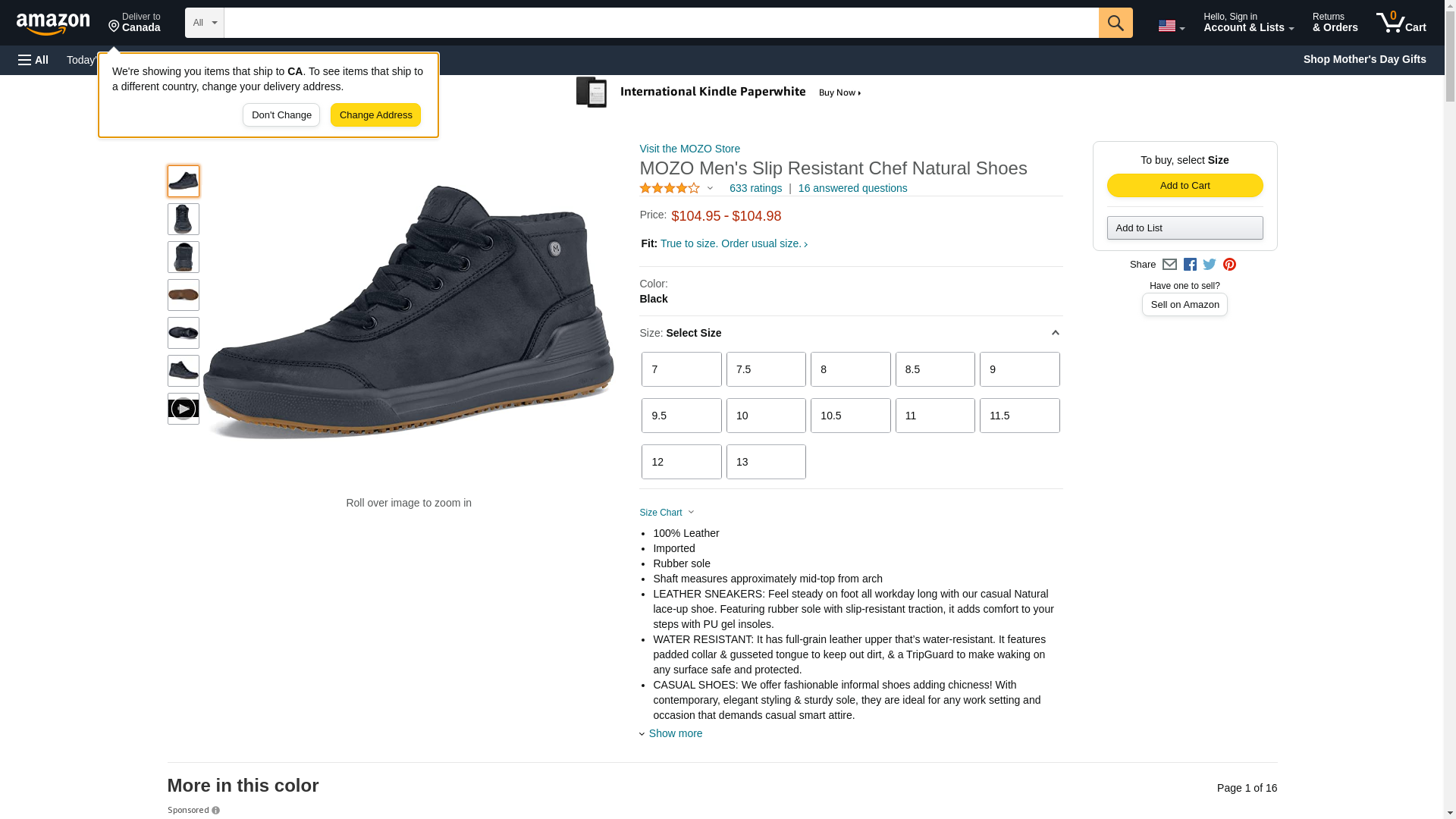 MOZO Men's Natural Slip Resistant, Chef Shoes, Black, 11
