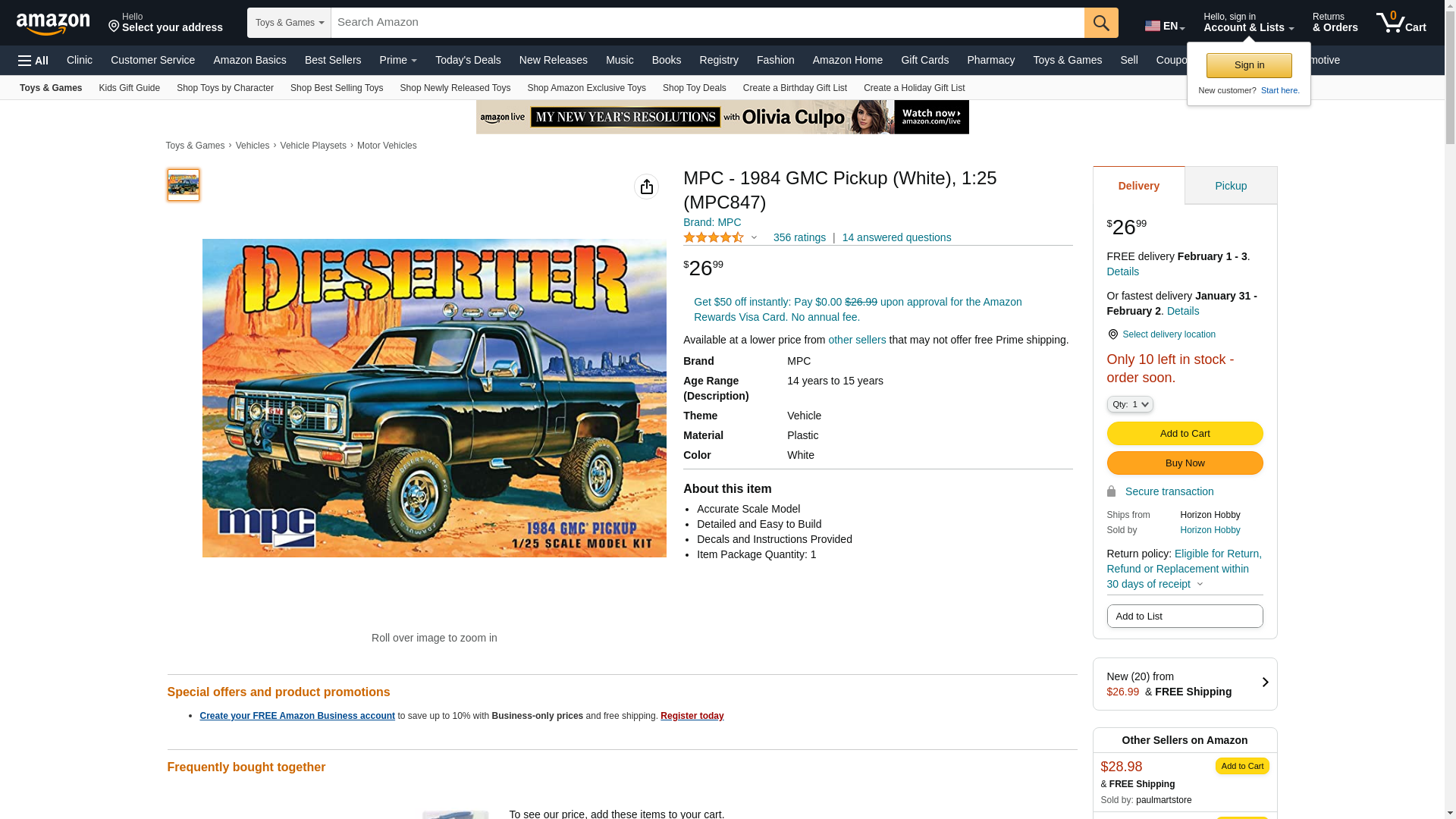 MPC 1984 GMC Pickup (White) 1:25 Scale Model Kit: Maxedbuy.com
