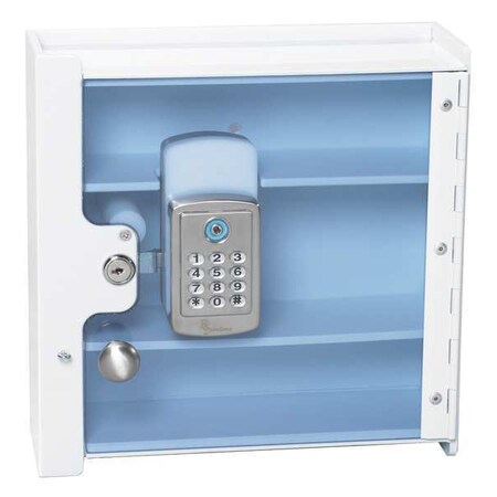 Electronic Lock Medication Cabinet with 2 fixed interior shelves features keypad security lock to allow instant access without looking for keys. Strong construction with clear blue polycarbonate door allow quick visual inspection of contents without opening. Mounts easily to most walls or doors (mounting hardware not included). Equipped with key override with 2 keys for manager access. Not available with audit trail capabilities. 12"W x 4"D x 12"H. 1-Year Warranty. Ships fully assembled. NOTE: Non-Cancellable, Non-Returnable