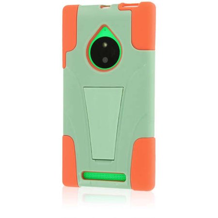 <br /> <b>Nokia Lumia 830 Case, Impact X Kickstand Protection:</b> <ul> <li>Built to be tough and durable</li> <li>Designed tough with a dual-layer system of shock-absorbing silicone and outer reinforced tough polycarbonate plastic</li> <li>Locking kickstand feature ideal for watching videos, browsing the web and reading in horizontal or vertical positions</li> <li>Precise cutouts for all given ports thus keeping device functionality to a maximum</li> <li>Textured design and silicone materials provide for a more enhanced device grip and tactile feel</li> </ul>