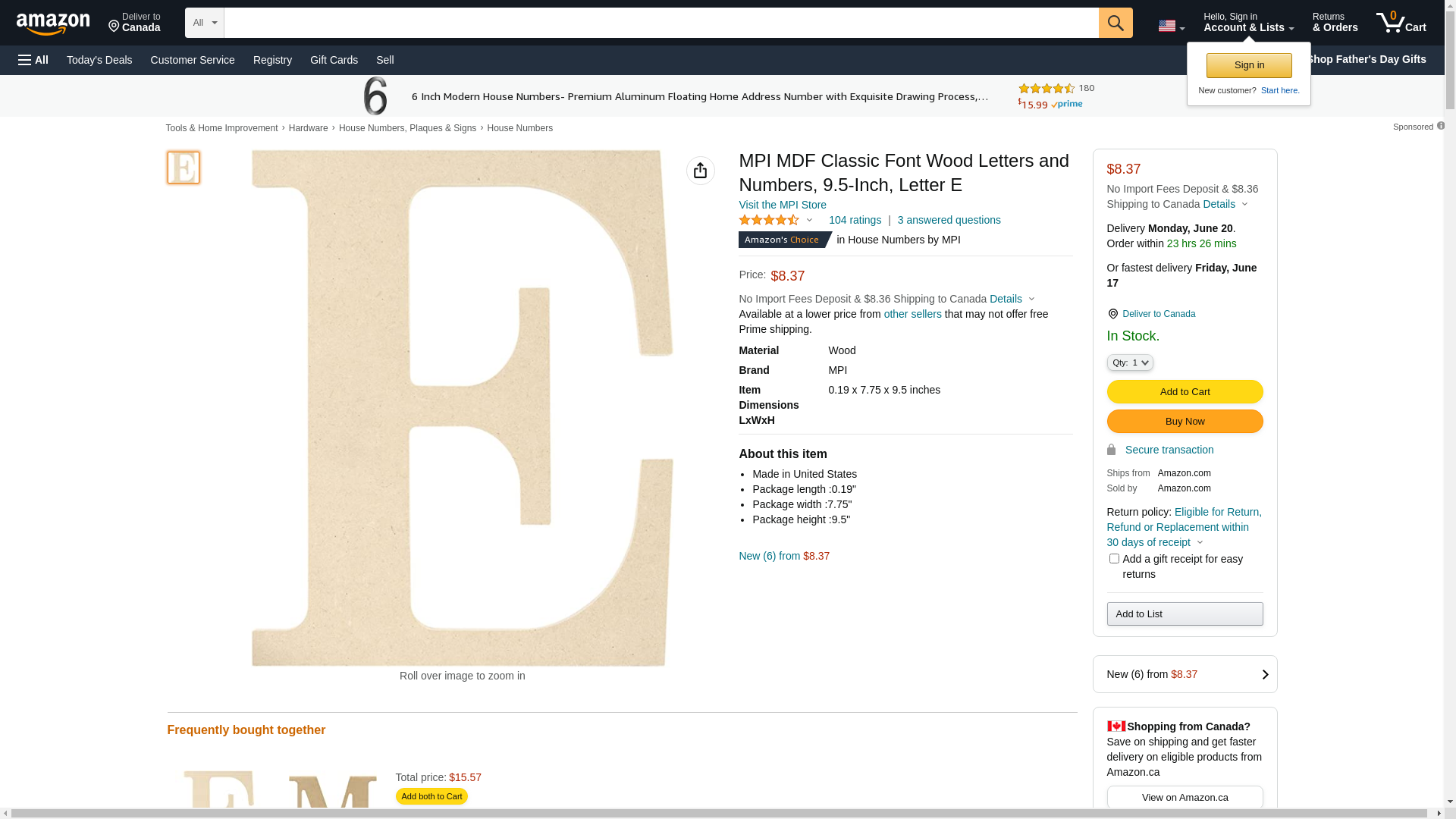 MPI MDF Classic Font Wood Letters and Numbers, 9.5-Inch, Letter E: Maxedbuy.com