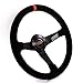 Drifting / Track Day Steering Wheel 13.75 in. Diameter Aluminum FrameSuede Grip w/ Orange Marker6 Hole Pattern 2.50 lbs. 2.36 in. Dish Horn Button Sold Separately