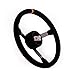 Steering Wheel - Lightweight - 15 in Diameter - 3-Spoke - 3-1/4 in Dish - Black Suede Grip - Orange Stripe - Thumb Insert - Steel - Black - Each