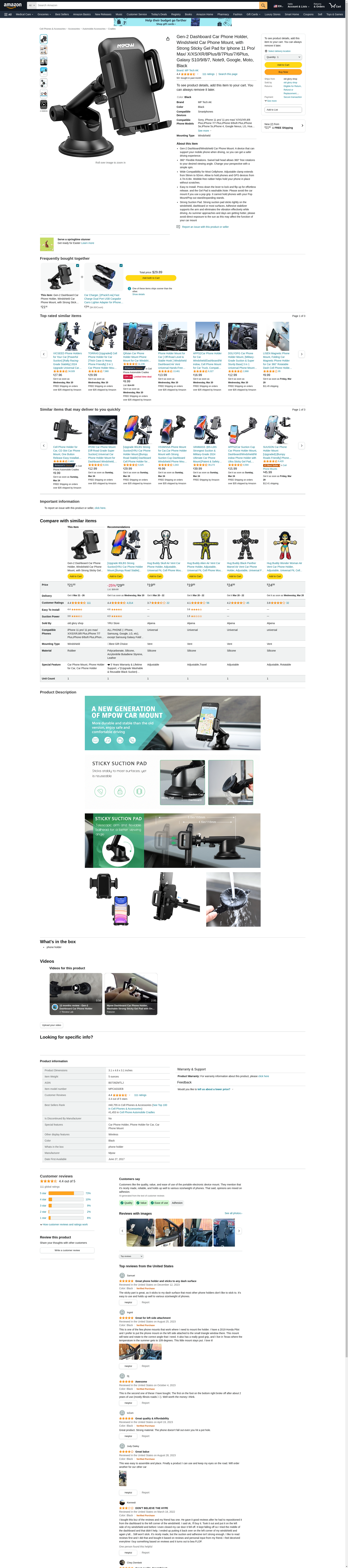 Mpow Car Phone Mount,Washable Strong Sticky Gel Pad with One-Touch Design Dashboard Car Phone Holder for iPhone 8/8Plus/7/7Plus/6s/6Plus/5S, Galaxy S5/S6/S7/S8, Google Nexus, LG, Huawei and More: Maxedbuy.com