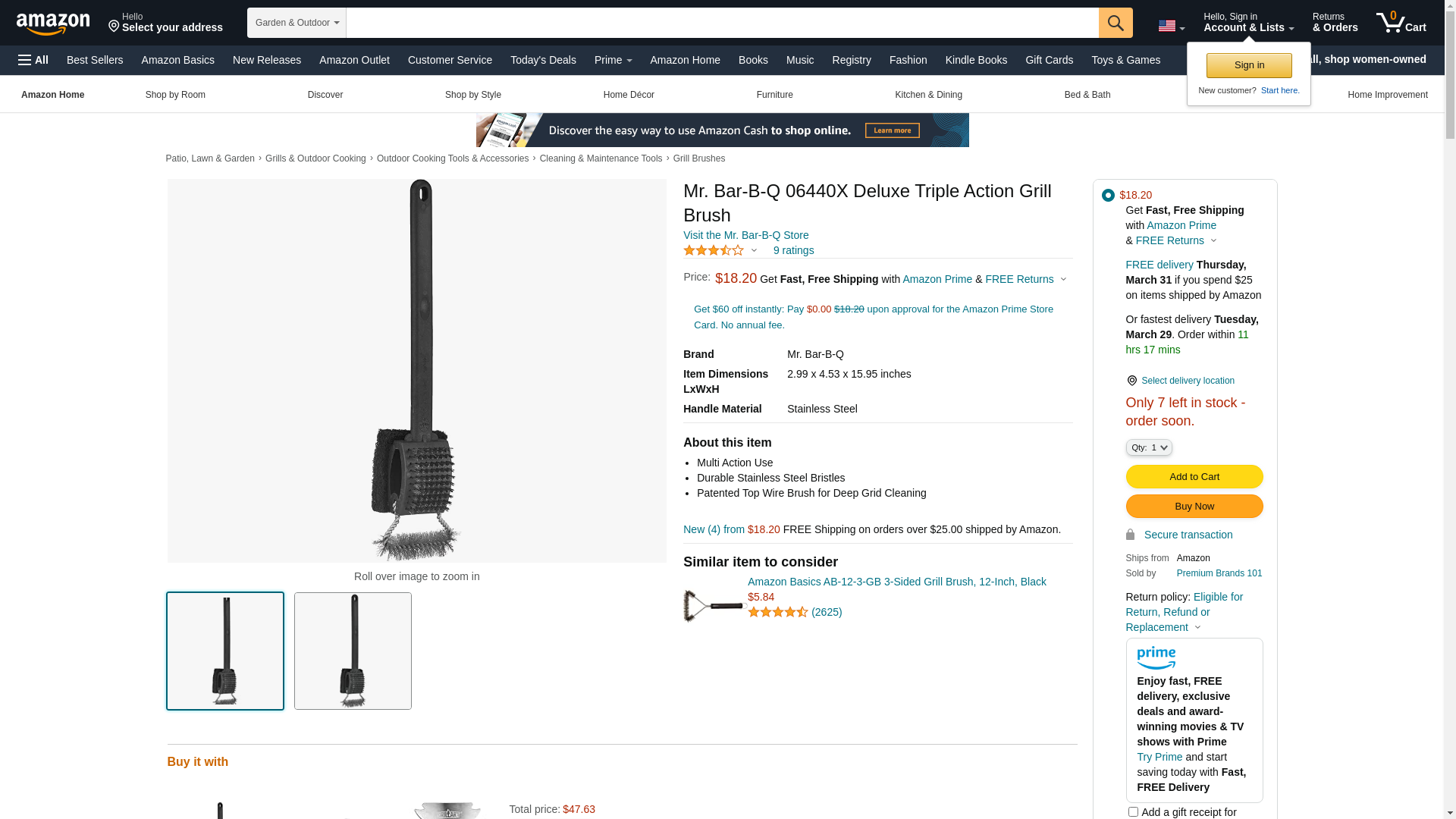 Mr. Bar-B-Q 06440Y Deluxe Triple Action Grill Brush