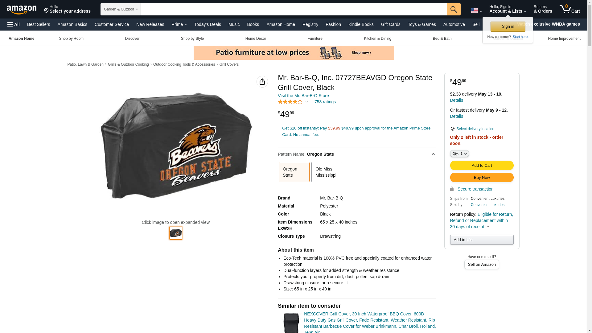 Mr. Bar-B-Q, Inc. 07730SCGD South Carolina Grill Cover, Black
