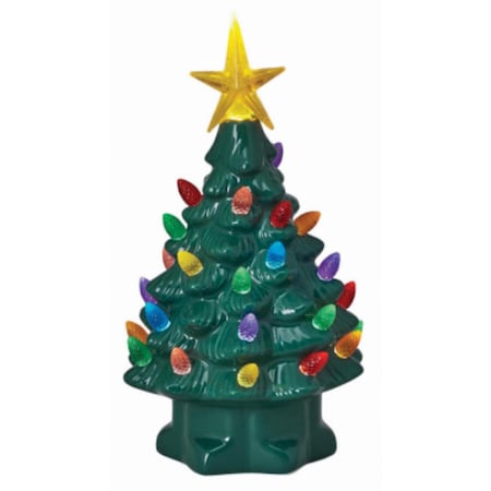 5.5", Green, Nostalgic Christmas Tree, Bring That Warm Vintage Charm Of Christmases Past To Your Home, Modern Features Include LED Lights & Porcelain Material, Battery Operated, Uses 2xAA Batteries, Not Included.