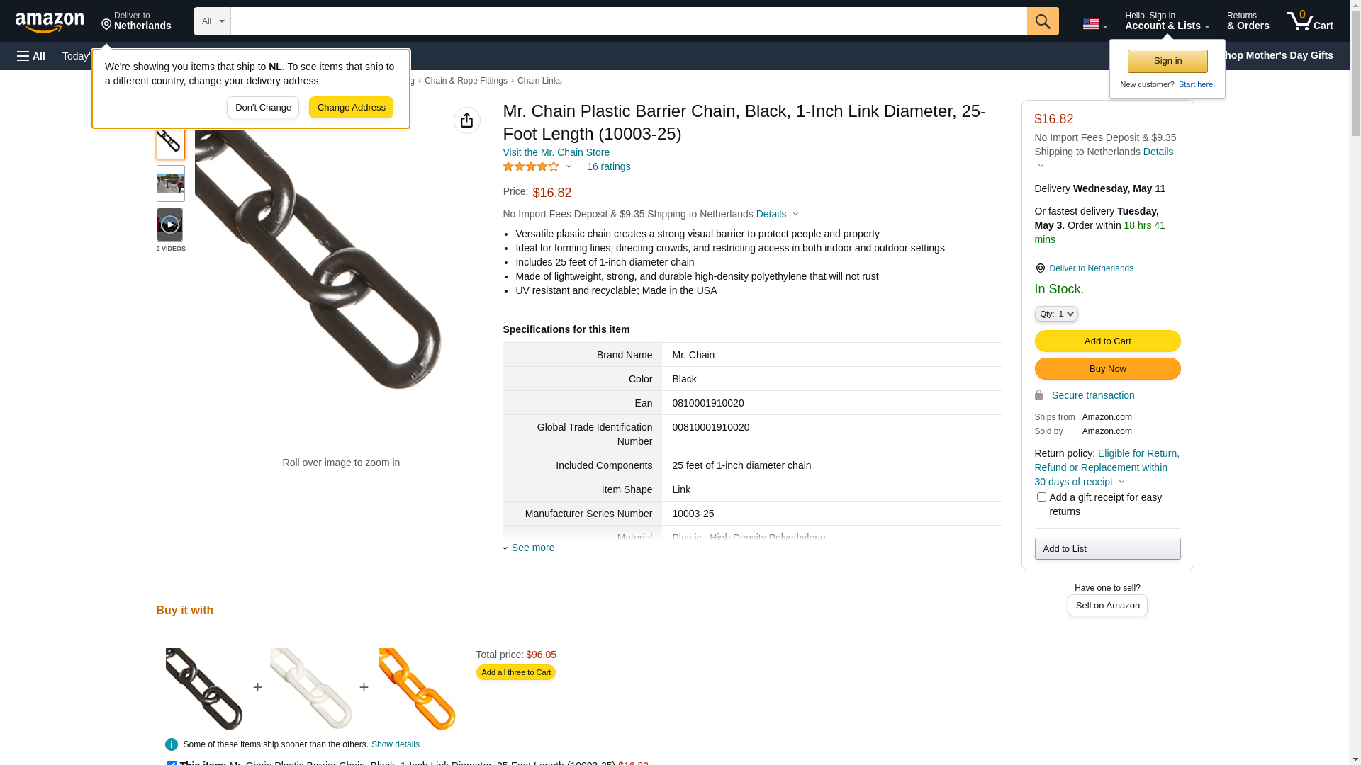 Mr. Chain Plastic Barrier Chain, Black, 1-Inch Link Diameter, 25-Foot Length (10003-25)