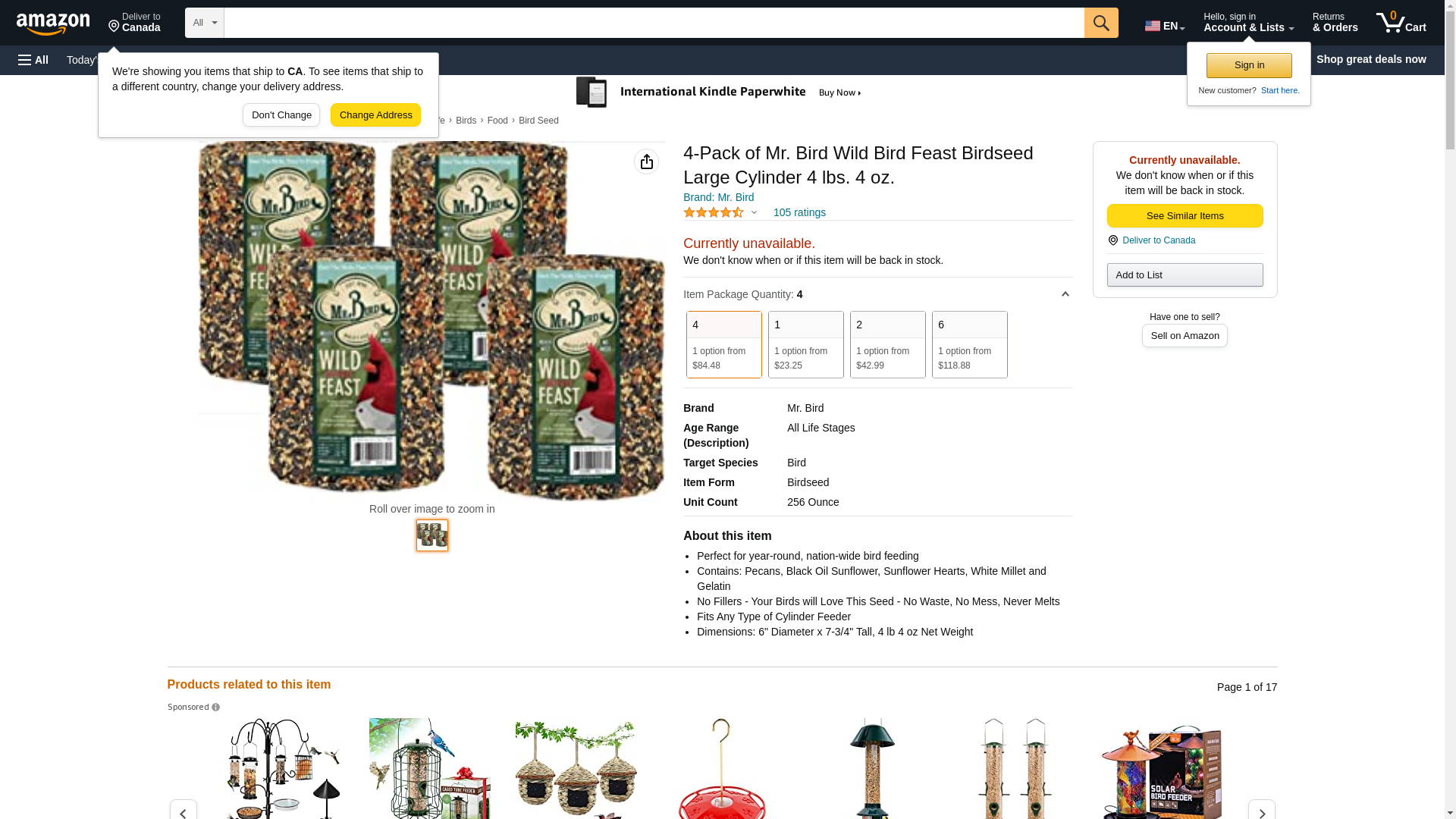 This all purpose seed blend is perfect for wild bird feeding. The huge 4 lbs. cylinder means this cylinder will last for days and days, no more running out to refill the feeders everyday.What makes this product special is the formula; PECANS, black-oil sunflower, sunflower hearts, and just a dash of white millet. You will see the quality and the dramatic results in your own yard.Just what your customers want, more birds and a greater variety of birds. And just what you want, customers that return time and time again just to keep their little birds happy.