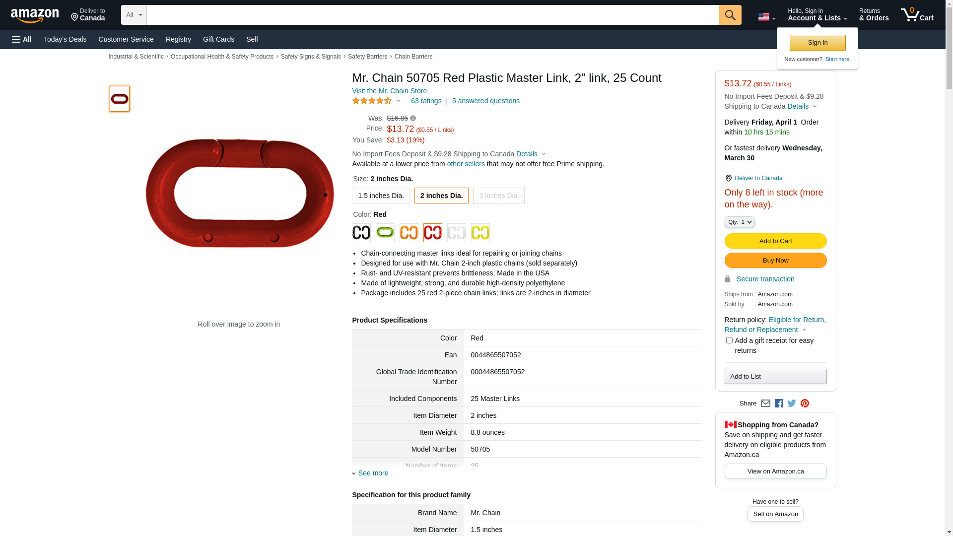 Mr. Chain 50705 Red Plastic Master Link, 2" link, 25 Count