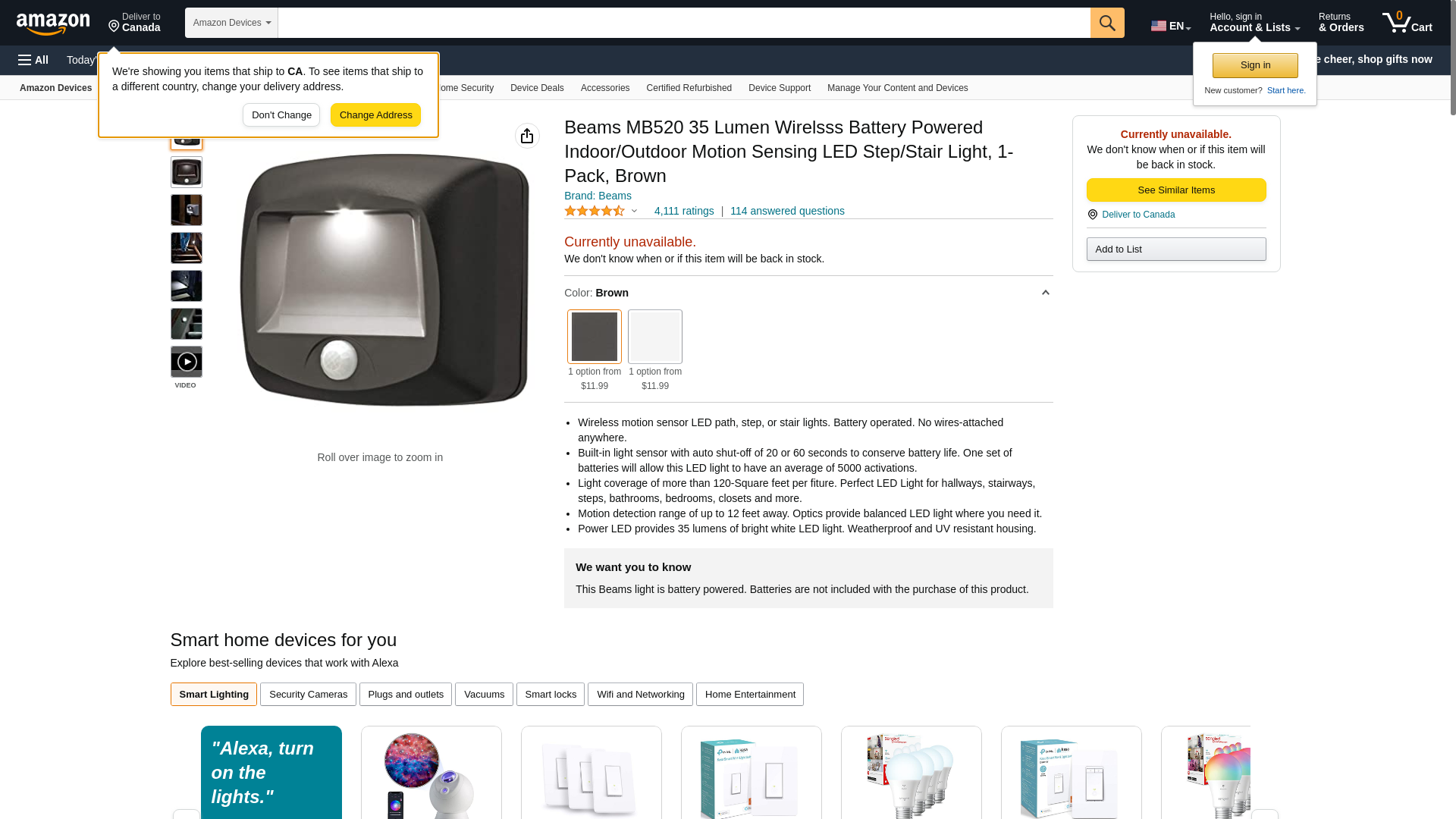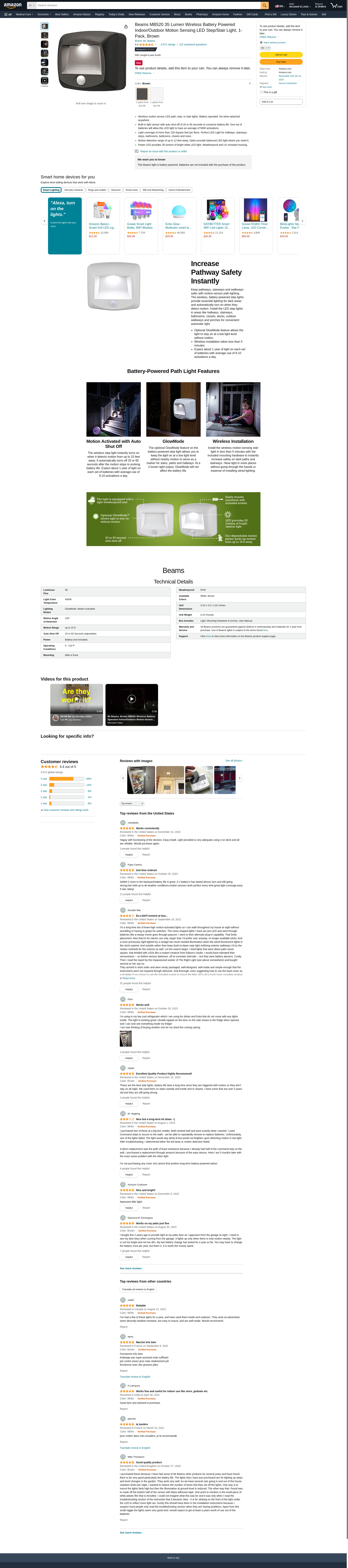 Mr. Beams MB520 Wirelsss Battery-Operated Indoor/Outdoor Motion-Sensing LED Step/Stair Light, Brown