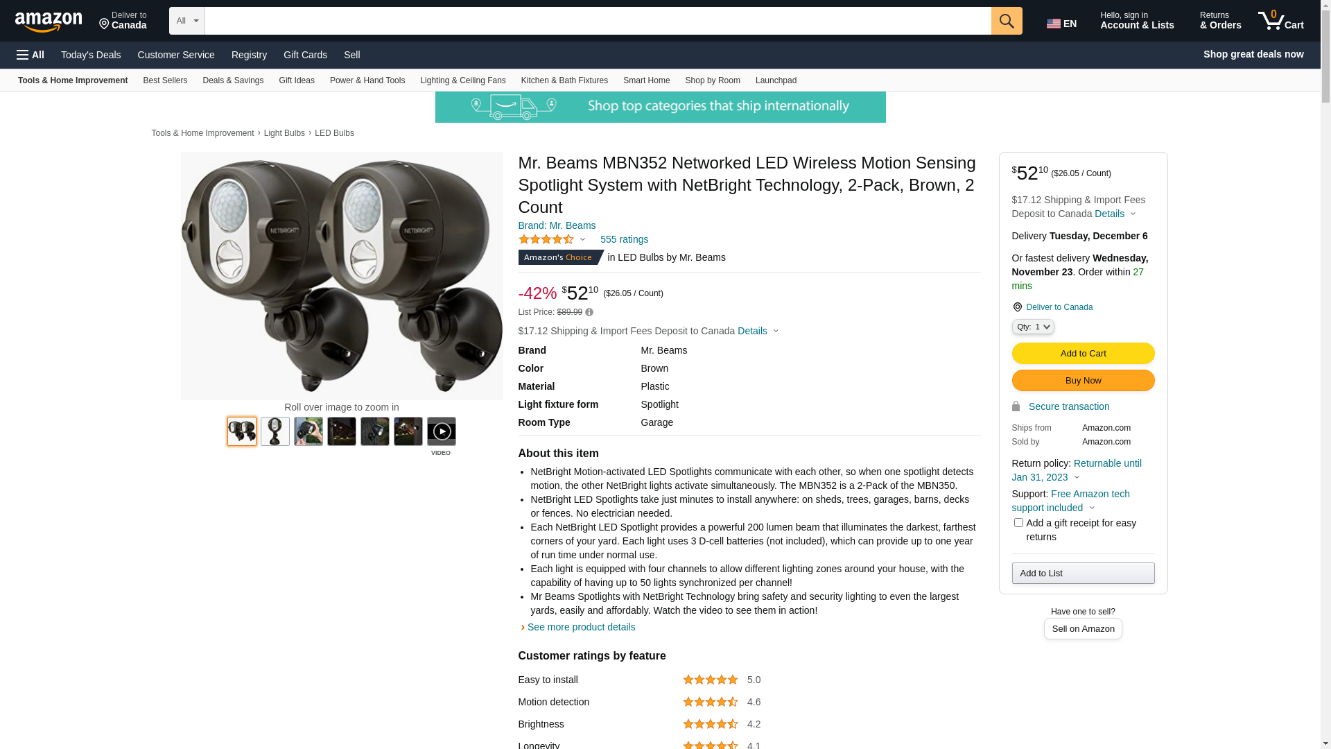 | Feature | NetBright Motion-activated LED Spotlights communicate with each other, so when one spotlight detects motion, the other NetBright lights activate simultaneously. The MBN352 is a 2-Pack of the MBN350. |