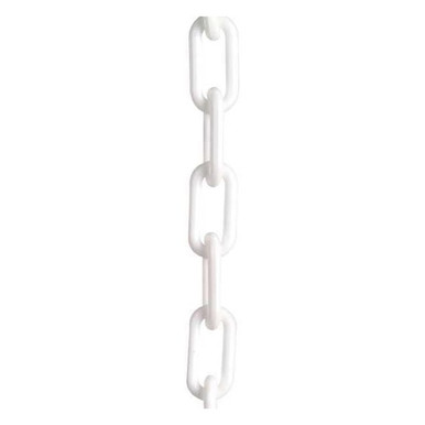 Plastic Chain, Application Outdoor or Indoor, 1 1/2 in, 50 ft, White, Polyethylene, Gloss Finish, For Use With Crowd and Traffic Control Stanchions, Garden Ground Post Stakes, Hanging Plant, Industrial Safety Cones and Signs