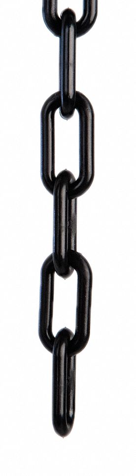 Plastic Chain, Application Outdoor or Indoor, 1 1/2 in, 50 ft, Black, Polyethylene, Gloss Finish, For Use With Crowd and Traffic Control Stanchions, Garden Ground Post Stakes, Hanging Plant, Industrial Safety Cones and Signs