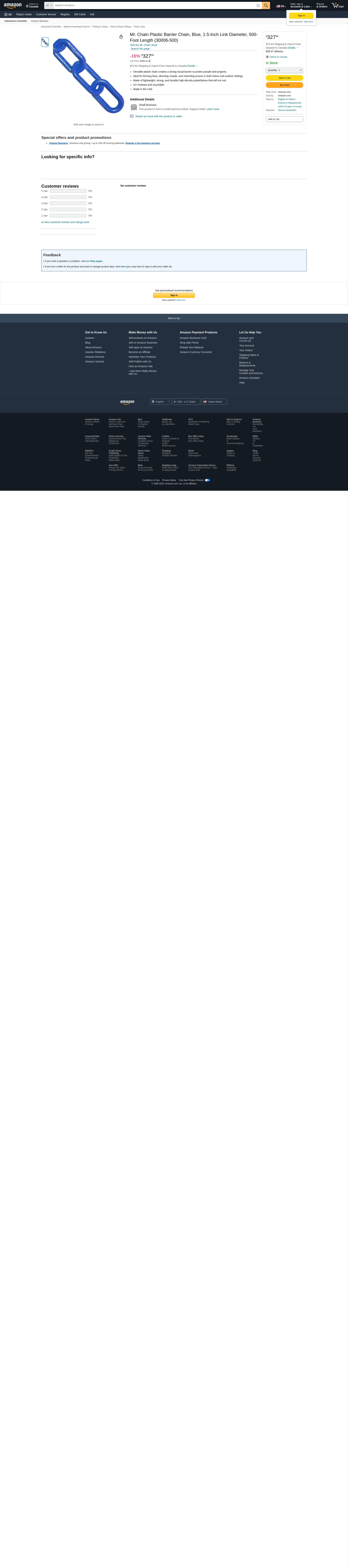 Mr. Chain Plastic Barrier Chain, Blue, 1.5-Inch Link Diameter, 500-Foot Length (30006-500)
